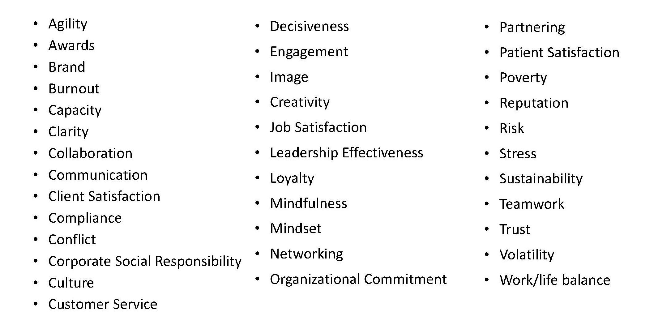 Many soft data items are more difficult to convert to money. They are often connected to these hard data categories, but often fall into the soft data category. These include measures such as employee development and advancement, client service, image, reputation, client satisfaction, leadership, and innovation. Assigning monetary value to these measures is more difficult.